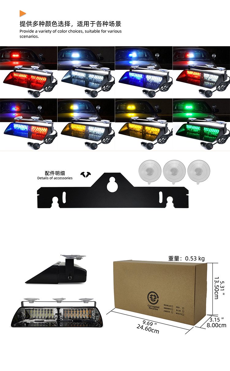 Car suction cup warning light, windshield strobe light, strobe light, 16 LED emergency flashing light, suction cup shovel light-1603